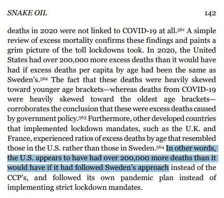 Hauntingly, the results of the NBER and Economist studies are a near-perfect match of the simple calculations of lockdown deaths performed in my book, Snake Oil.