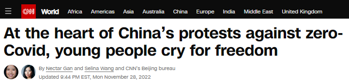 But in 2022, CNN admired China’s anti-lockdown protesters as “young people” who “cry for freedom”