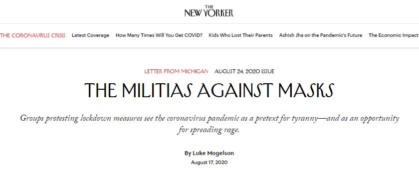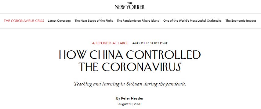 In 2020, the New Yorker denounced anti-lockdown protesters as “militias against masks” while marveling at how “China controlled the coronavirus.”