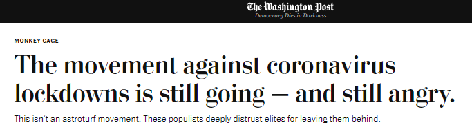 In 2020, the Washington Post denounced anti-lockdown protesters as “angry” populists who “deeply distrust elites,” and wished the United States was more like China.