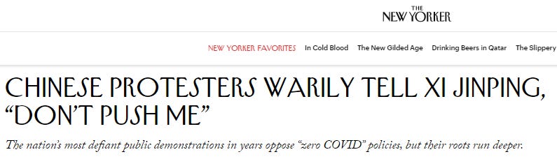 But in 2022, the New Yorker admired the protesters standing up to Xi Jinping.